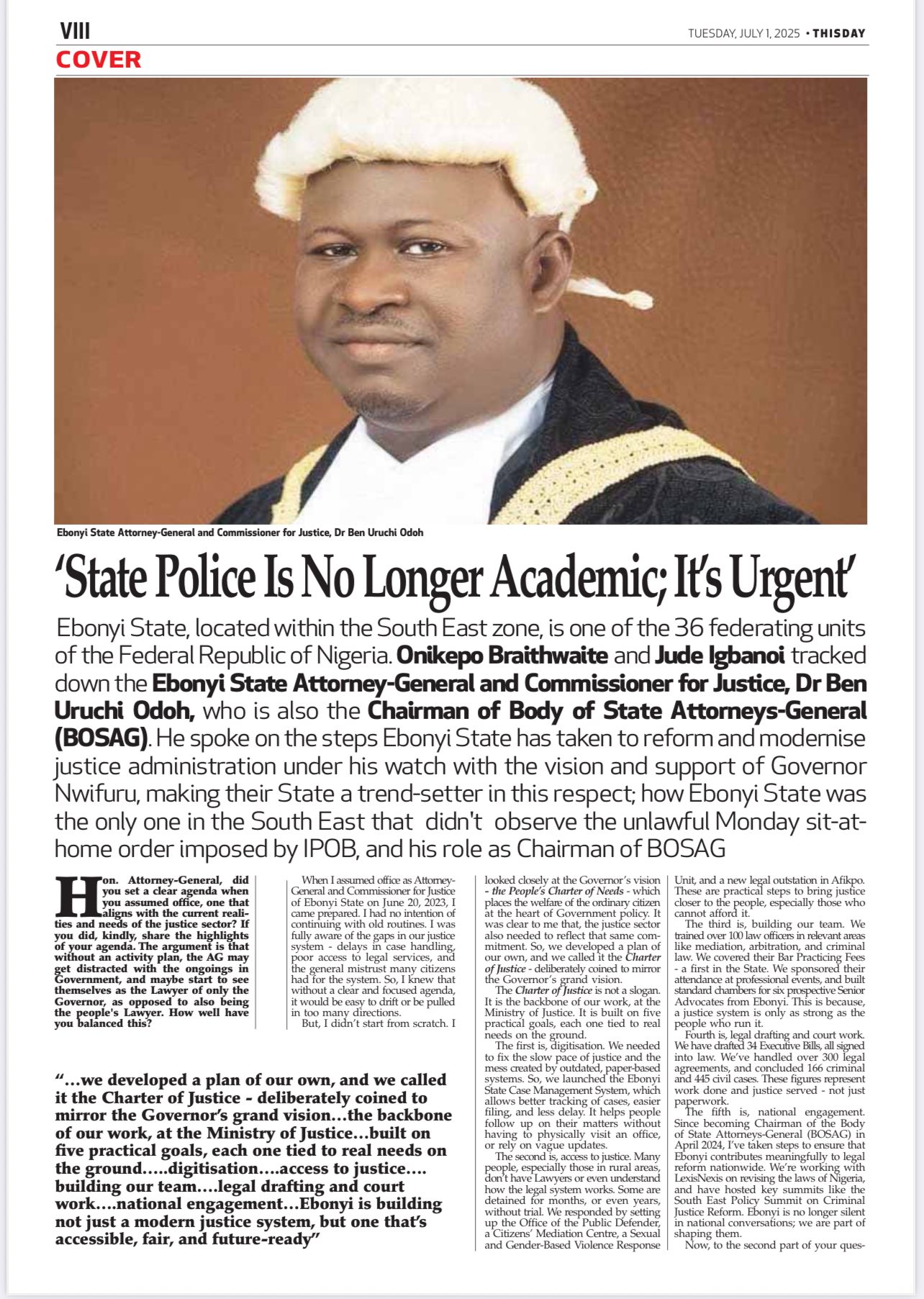 To build a justice system that is accessible, transparent, and people-centred - one that upholds the rule of law, protects the rights of all citizens, and fosters trust, fairness, and equity as the foundation for sustainable peace and development in Ebonyi State